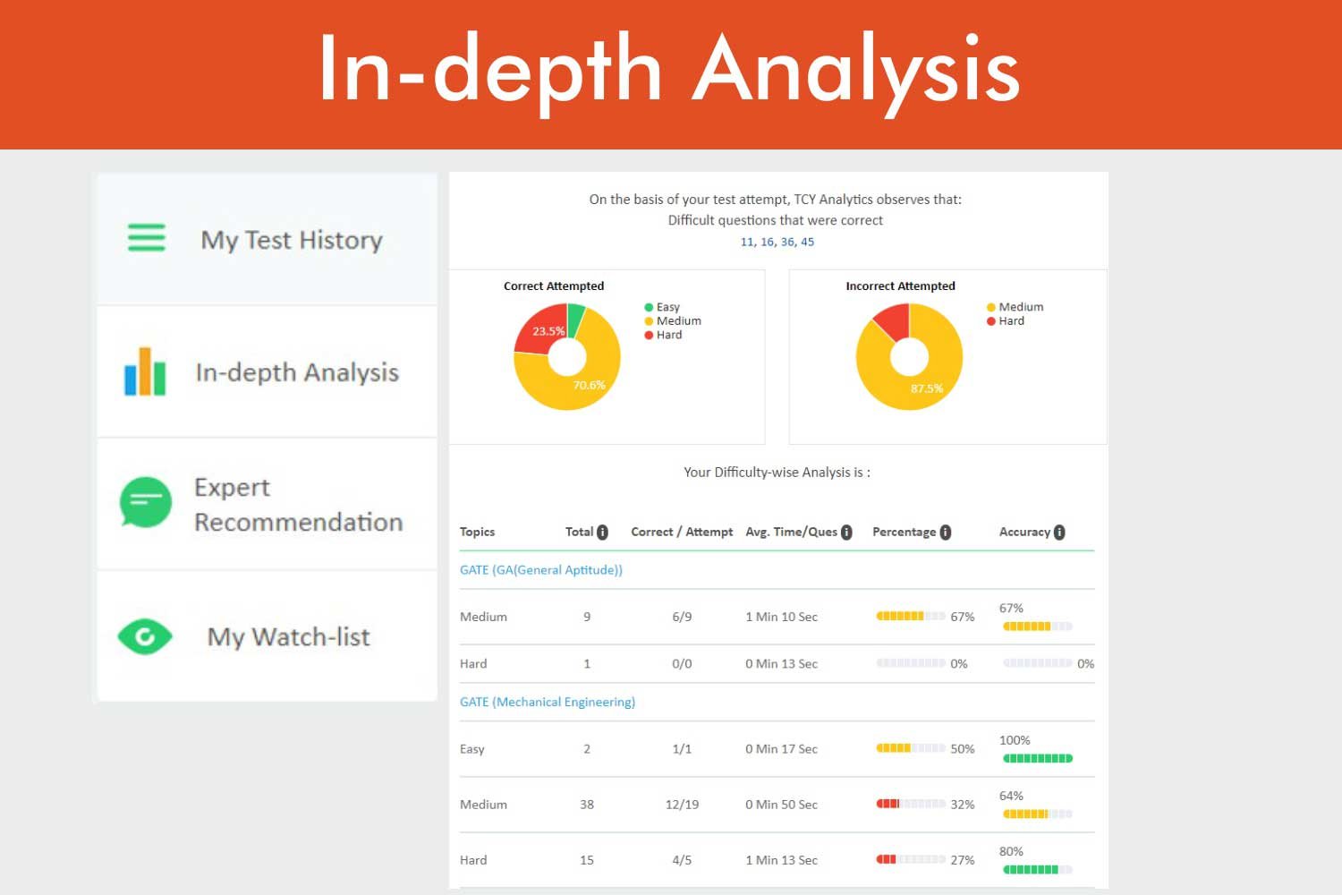 3. Section-wise reports for targeted GATE Exam preparations.